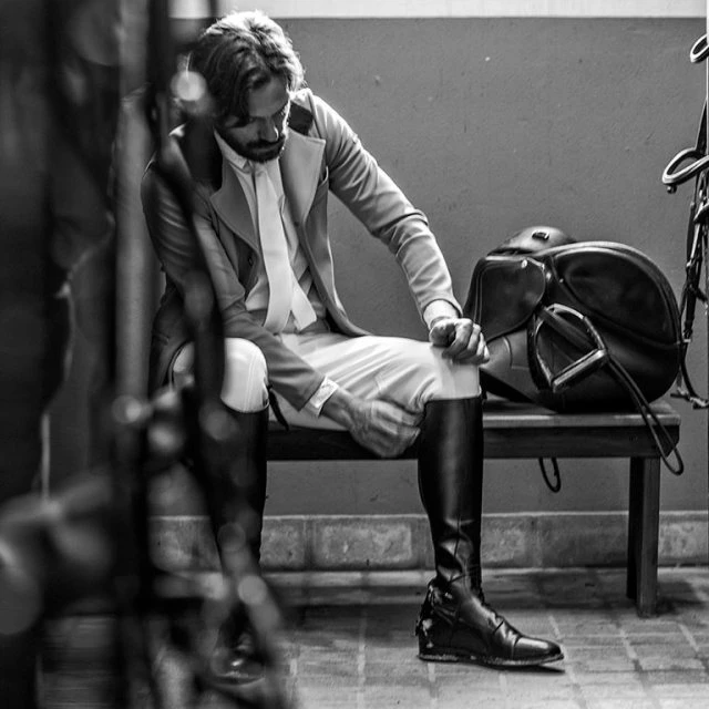 EGO7 Orion, tall riding boots with a modern design and high-end style, lace-up jumping boots made from full grain leather with elastic laces detail and extra-soft leather front. All EGO7 models have a rear elastic band. This ensures maximum comfort, freedom of movement and a glove-like, made-to-measure fit -and look- to any calf, together with extreme wear resistance and easy care of the innovative E-tex material. The full-length panel protects effectively the inner calf and guarantees a perfect contact with the horse.