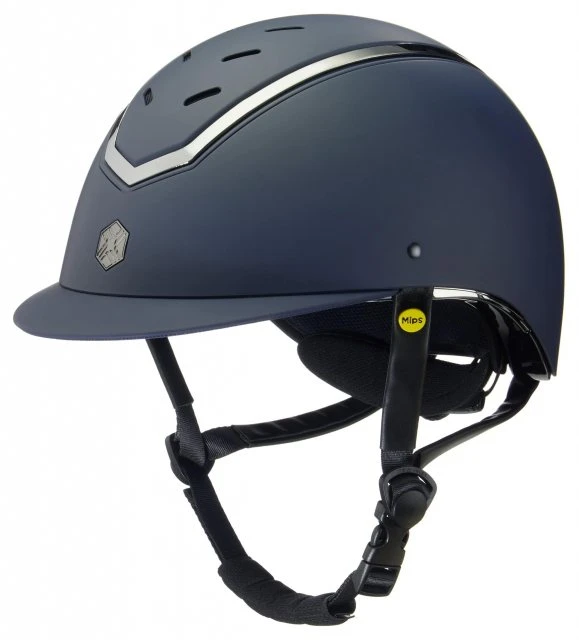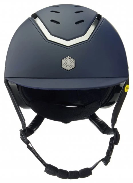 Introducing “The Kylo”, a revolutionary dial-fit helmet from EQX by Charles Owen; a pioneering addition to your equestrian gear. This stylish horse-riding hat boasts an adjustable shell for ease of fitting, thanks to its innovative rear dial. The Kylo in navy matte offers a stylish, sleek look, making it a fashionable and functional choice. This adjustable horse riding hat conforms to PAS015 and VG1 safety standards, ensuring optimal protection for the rider. This version offers improved safety thanks to the addition of MIPS technology.