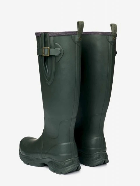 LeMieux Stride Womens Wellington Boot – Oak Green. Stride Wellington Boots are composed of 100% natural rubber and have a specially designed tread inspired by a horse’s hoof. The thick treads provide excellent traction in wet and icy situations, and the gel silicone cushioned insole is contoured for arch support. The inner is made of 100% neoprene for extra comfort and warmth. These Wellington Boots are completely waterproof, ammonia resistant, and stable friendly, making them ideal for everyday usage. The outer sole is built for stability and durability, and the legs are adjustable for fit. Not suitable for horse riding.