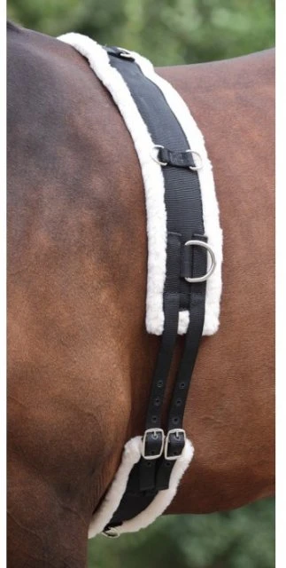 Nylon roller with 11 D-rings with a fleece lining across the top and a girth.